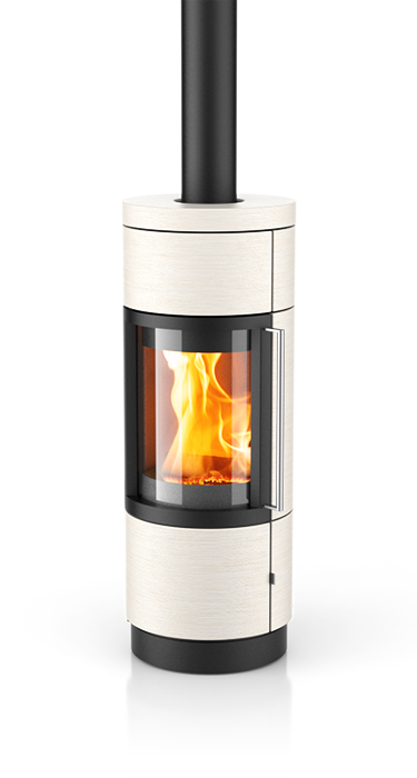 Mit einem Durchmesser von 39 Zentimetern ist ELVAS ein wunderschöner, schlanker Kaminofen. Er zaubert ein großartiges Feuerbild und das ohne zu viel Wärme zu erzeugen. Perfekt für Häuser und Wohnungen mit niedrigem Wärmebedarf. Sie können ELVAS in der Keramikfarbe bestellen, die in Ihrem Zuhause den richtigen Akzent setzt. Dazu wählen Sie eine edle Linientextur- oder Fächertextur-Keramik. Und dann dürfen Sie sich schon auf Ihren neuen Kaminofen freuen, der übrigens auch noch drehbar ist.
