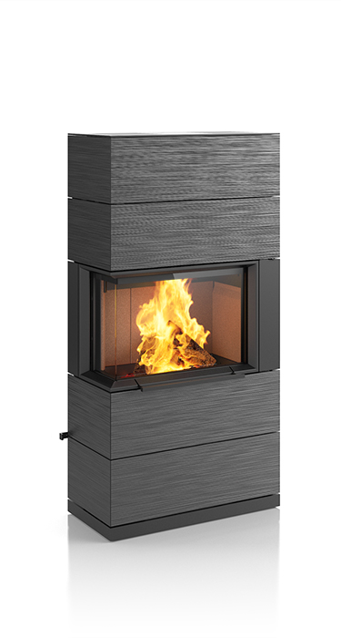 Viel Platz für ein wunderschönes Flammenspiel. Das macht den repräsentativen Kaminofen PADUA einzigartig. Sein durchdachtes Designkonzept umfasst eine Schiebetür, die sich komfortabel nach oben öffnet. Im passenden Regalsystem ist nicht nur genügend Platz für den Holzvorrat, es ist auch für seitliche Anschlüsse am Schornsteinzug geeignet. Die handgefertigte Keramik in edlen Texturen und ausgewählte Farben unterstreicht die exklusive Anmutung dieses besonderen Kaminofens. Auf Wunsch lässt sich PADUA mit einem Wärmespeicher ausstatten. Er ist in zwei Höhen erhältlich.
