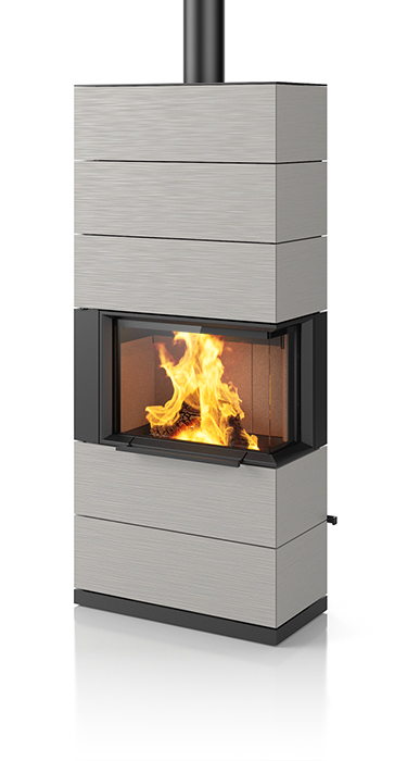 Viel Platz für ein wunderschönes Flammenspiel. Das macht den repräsentativen Kaminofen PADUA einzigartig. Sein durchdachtes Designkonzept umfasst eine Schiebetür, die sich komfortabel nach oben öffnet. Im passenden Regalsystem ist nicht nur genügend Platz für den Holzvorrat, es ist auch für seitliche Anschlüsse am Schornsteinzug geeignet. Die handgefertigte Keramik in edlen Texturen und ausgewählte Farben unterstreicht die exklusive Anmutung dieses besonderen Kaminofens. Auf Wunsch lässt sich PADUA mit einem Wärmespeicher ausstatten. Er ist in zwei Höhen erhältlich.