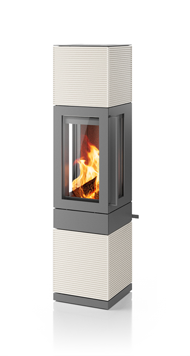 - Als Eckofen platzierbar, ohne sichtbare Anschlüsse